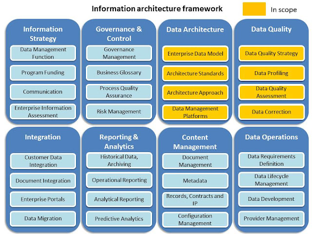 The picture below visualizes information architecture pillars and sets the scope for overall analysis.